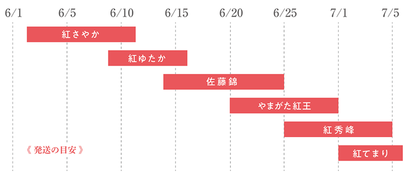 - 大玉で果肉が硬く日持ちする品種。 酸味がおさえめで甘味が強いので、近年人気が高い「さくらんぼの女王様」