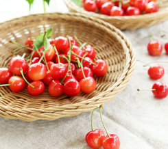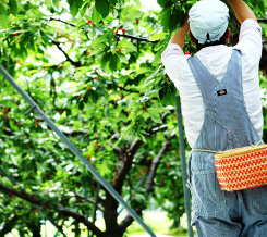 当園では、熟して糖度が十分のったさくらんぼを早朝涼しいうちに収穫します。